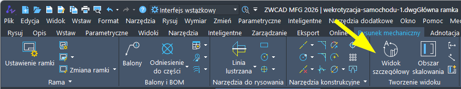 Szczegóły na rysunku technicznym pełnią ważną funkcję umożliwiając przedstawienie w powiększeniu tych elementów detalu, które w podziałce stosowanej na rysunku są zbyt małe aby je w sposób jednoznaczny przedstawić i zwymiarować. Dzięki temu można precyzyjnie opisać i wymiarować drobne konstrukcje, które w pełnym widoku byłyby nieczytelne. W ZWCAD MFG mamy funkcję do tworzenia szczegółów, jest ona dostępna z menu wstążkowego Po jej wybraniu definiujemy okrąg otaczający fragment rysunku jaki chcemy powiększyć, a następnie wprowadzamy skalę szczegółu (można ją potem zmieniać). W dalszym kroku definiujemy położenie szczegółu. Jeśli rysunek źródłowy się zmieni, możemy łatwo zaktualizować widok szczegółu - wystarczy kliknąć w szczegół i zatwierdzić okno, które się pojawi. Tworzenie szczegółów oraz aktualizację widoku pokazałem na filmie poniżej.