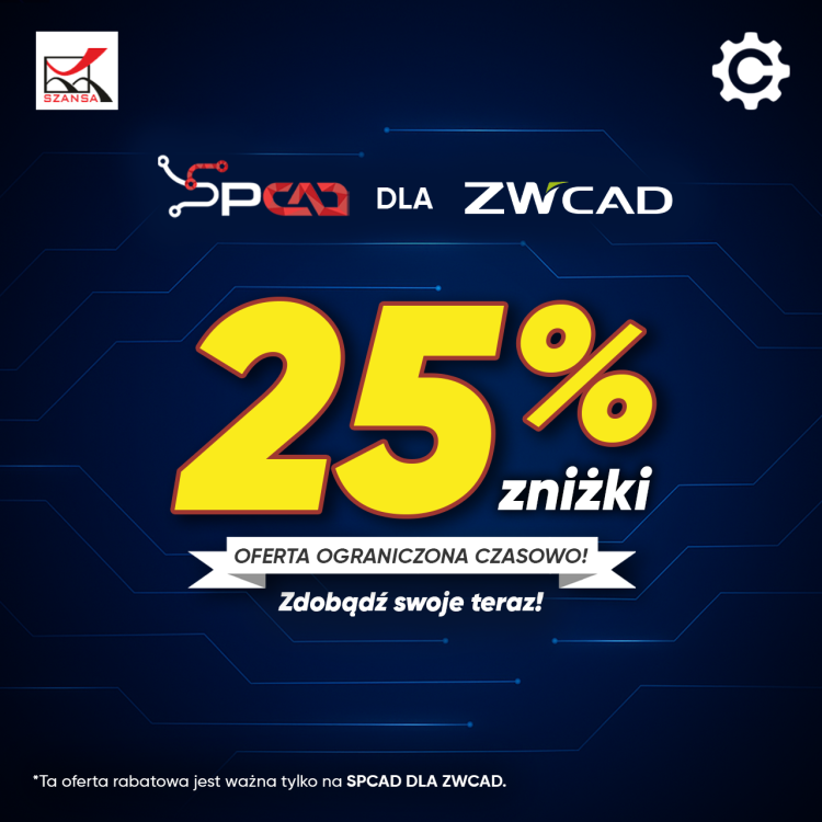 Promocja w majowa SPCAD. Tylko w maju kup nową licencję ZWCAD 2026 PRO i otrzymaj gratis 3 miesięczną nakładkę SPCAD. Oferta dostępna u handlowców, zapraszamy do kontaktu: tel. 33 307 01 95, 785 192 430 mail: biuro@zwcad.pl